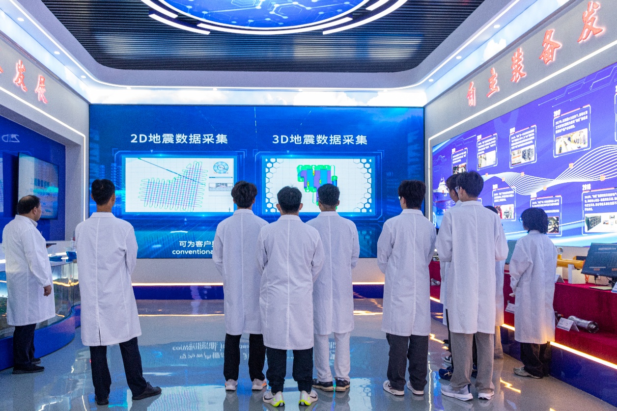 在中海油服物探研究院成果转化中心,技术人员通过实时跳动的渤海湾三维地震数据模型,向实践团展示自主研发的海上采集装备系统与智能化运营成果:依托畅通的PLM研发系统、物探生产运营系统和远程支持系统,油田实现了海陆数据的实时联动,有力保障了海上油气勘探。驻足地震数据处理与解释平台,成员们亲眼见证原始信号通过先进算法转化为清晰的地层剖面——智能化正推动其精度实现跨越式提升。
